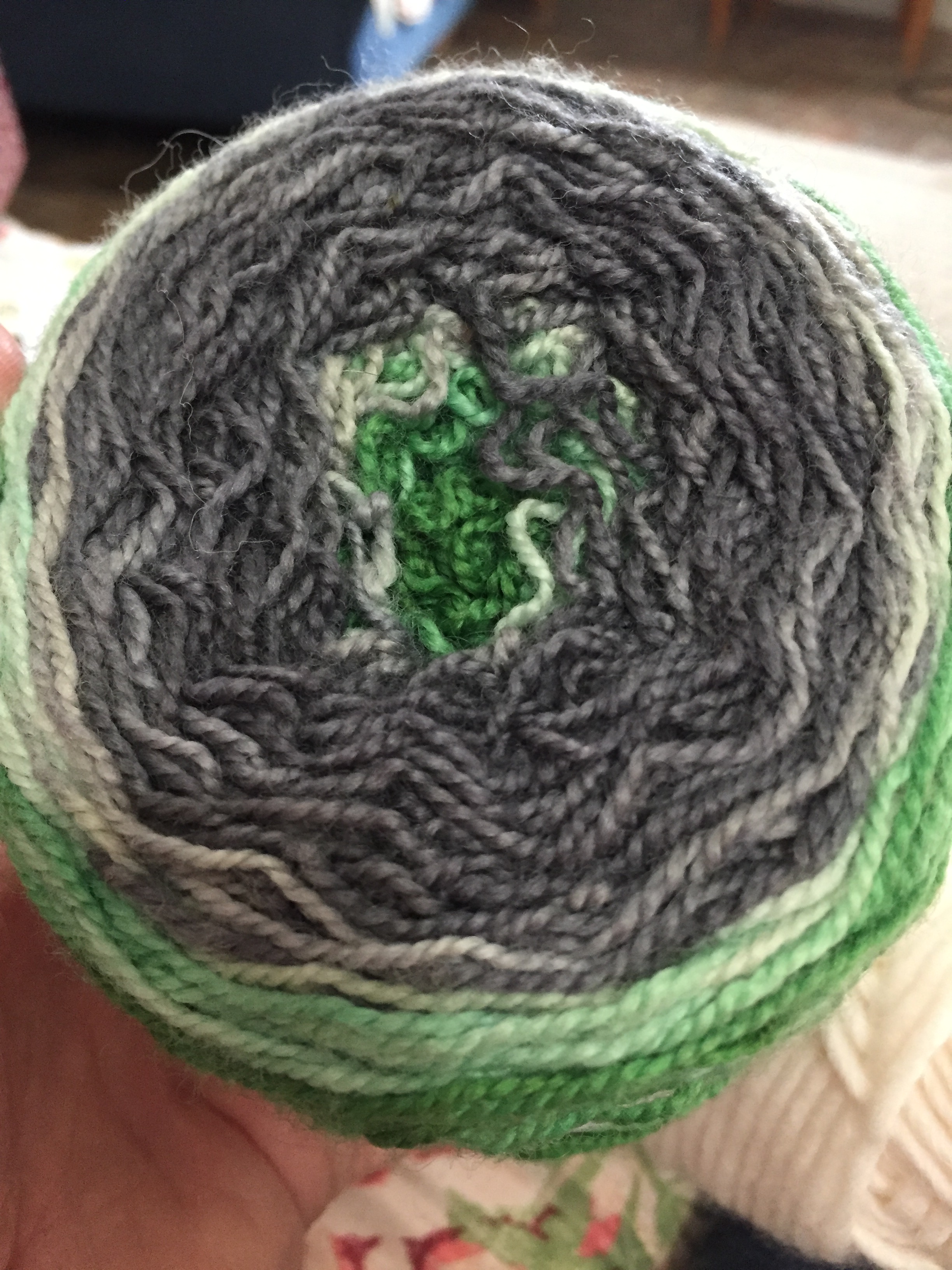 When I went to buy more wool for the loopy sheep I’m making, I had to buy this cake. Green and gray are a good combo.